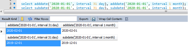 * adddate()와 date_add()는 동일한 함수이며, subdate()와 date_sub()도 동일한 함수.