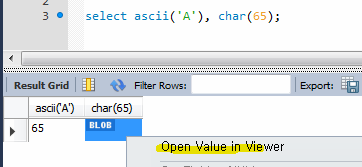 > BLOB은 워크벤치 버그임. 우클릭 Open Value in Viewer 클릭하면 정상적으로 보임.(A)
