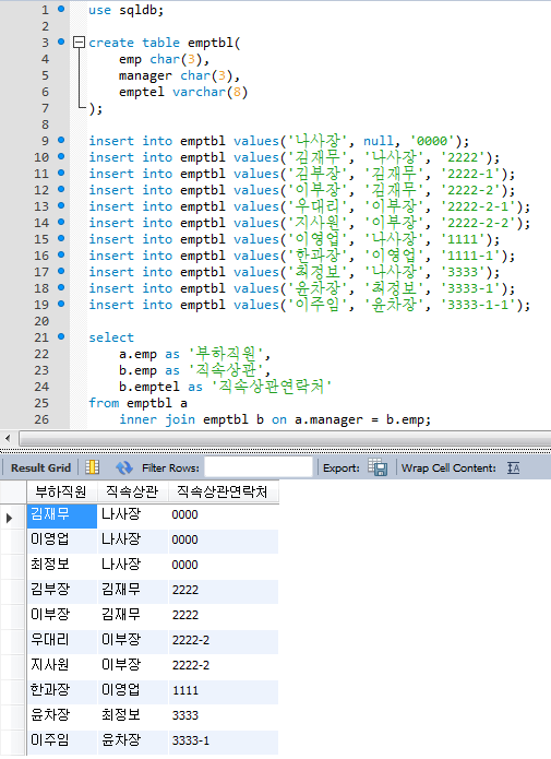 위는 select ~ from ~ join ~ where 순의 구조로 이루어진다.