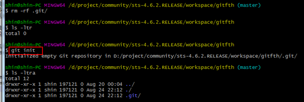 Git init : 저장소 생성(.git 디렉토리 생성)