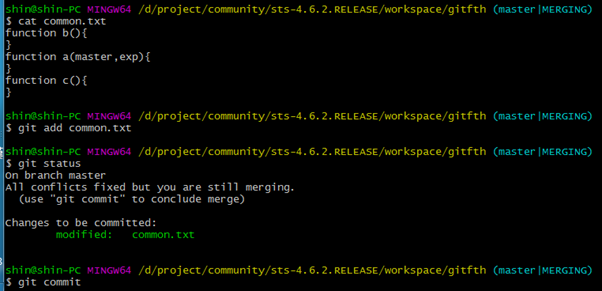 Conflickts 에러가 났던걸 수정했다는 메시지를 보여줌.