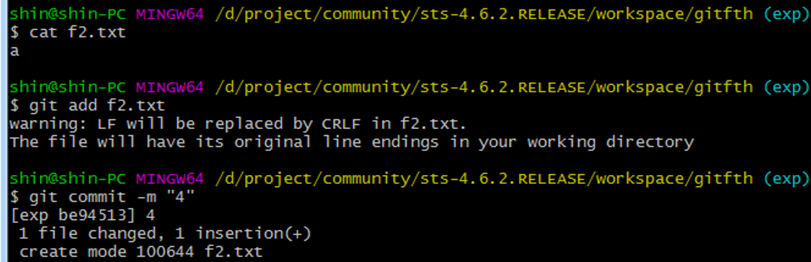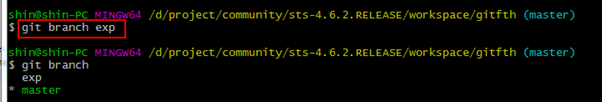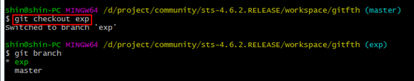4. exp 브랜치를 생성하고 exp 브랜치로 전환