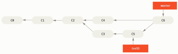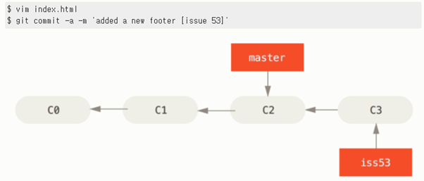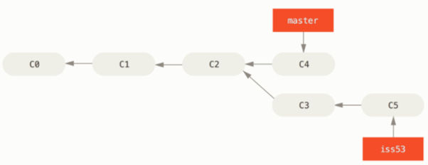 그렇게 되면 c2커밋을 master와 iss53이 동시에 가르키게 된다.