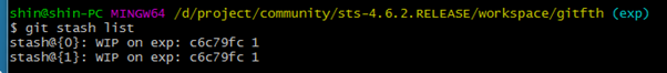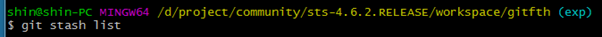4. stash 리스트를 확인하면 최신께 지워지고 하나만 남은 것을 볼 수 있다.