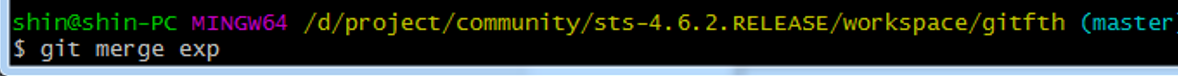 git merge : exp에서 작업한 내용을 master로 병합