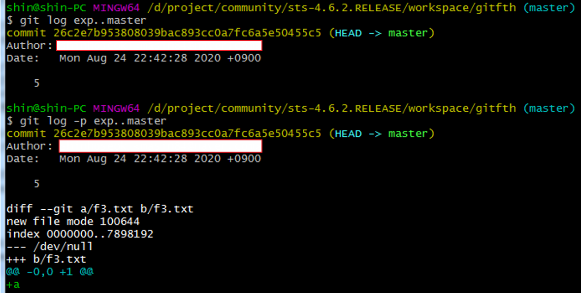 2. git log –p exp..master : exp에는 없고 master에 있는 것을 소스와 함께 보여달라