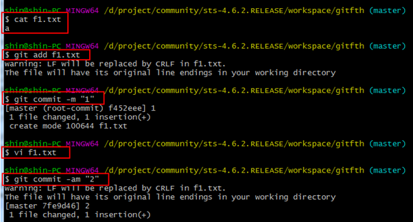 1. f1.txt를 수정 후 커밋 후 히스토리보기
