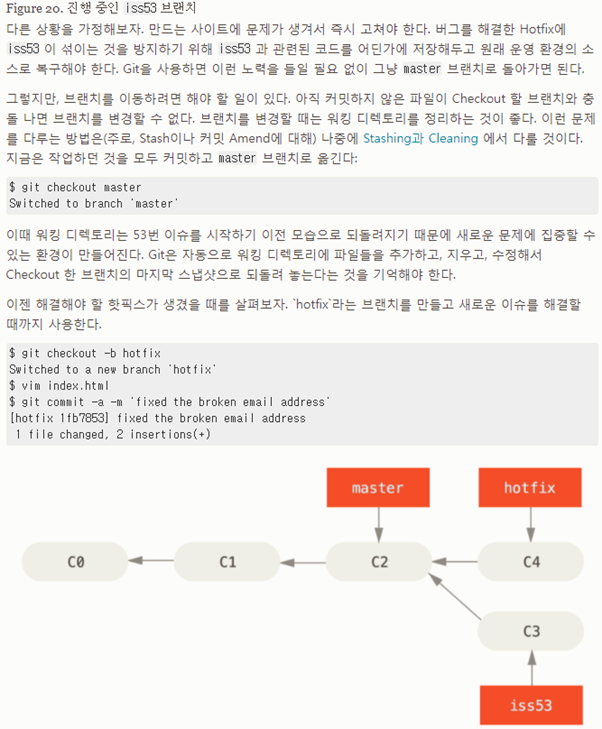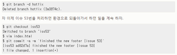 Hotfix가 끝났으면 hotfix 브랜치를 지우고 iss53을 처리해야 한다.