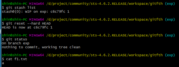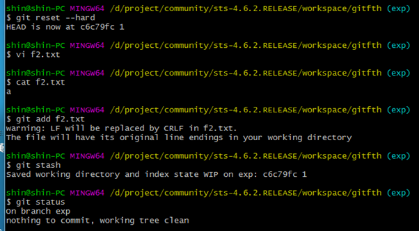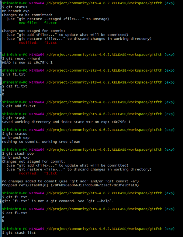 5. git stash : working directory의 내용과 index의 내용이 Save 저장됨 exp에