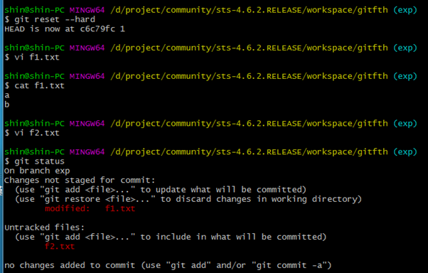 2. 즉 f1.txt는 작업한 내용을 가지고 있지 않은 상태가 된다.