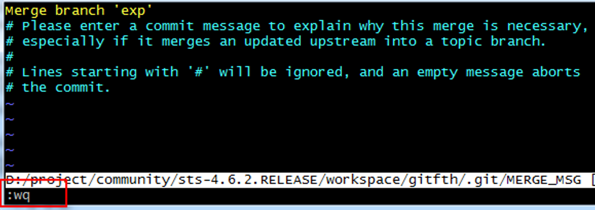 메시지 적고 wq 저장 생략