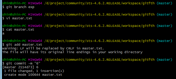 6. exp 브랜치에서 작업한 내용을 master 브랜치로 병합