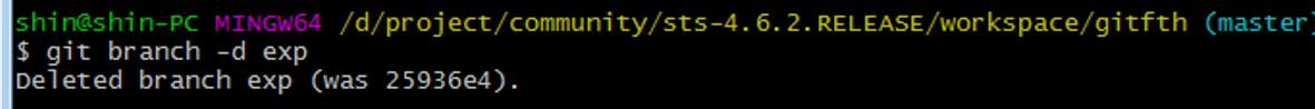 git branch –d exp : exp 브랜치 삭제