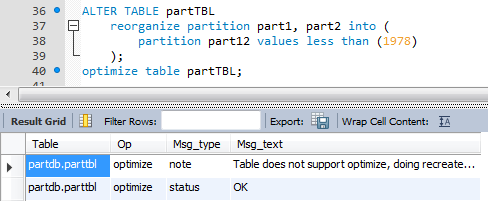 34. 파티션을 재구성하기 위해 optimize table 문을 수행해줘야 한다.