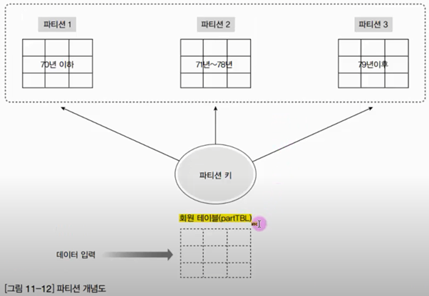 * 회원을 파티션으로 구분하여 테이블을 생성할 때의 개념도.