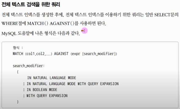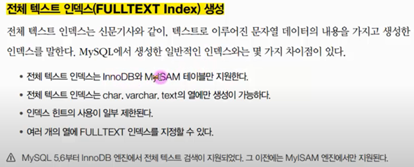 전체텍스트 인덱스를 검색함으로써 검색속도가 빠르게 검색될 것이다.