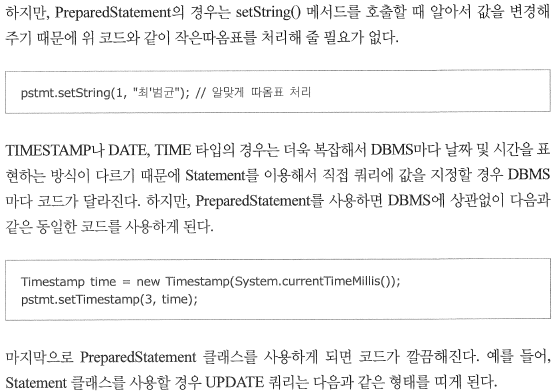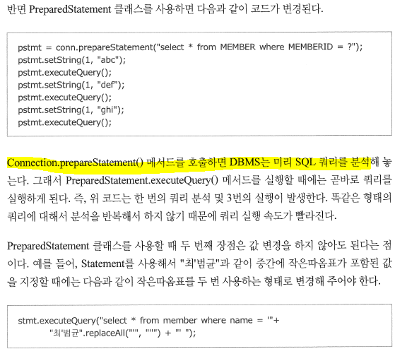 *Connection.prepareStatement()를 호출할 때 미리 DBMS는 SQL 쿼리를 분석해 놓기에 빠르다.