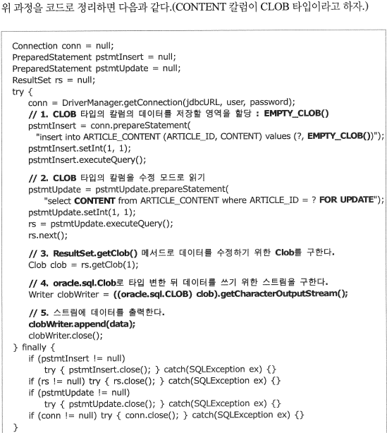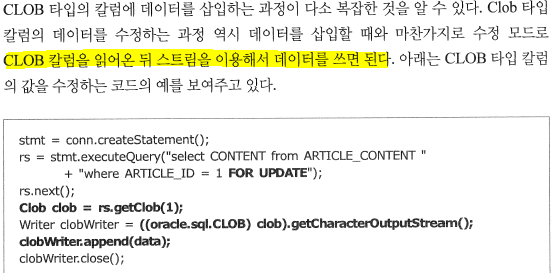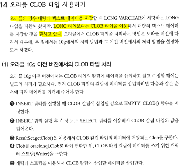 1. EMPTY_CLOB() : 삽입될 값을 함수로 지정. executeUpdate 가 되어야한다. 책오타