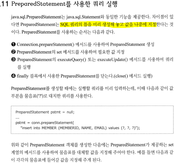 *Connection.prepareStatement()를 호출할 때 미리 DBMS는 SQL 쿼리를 분석해 놓기에 빠르다.