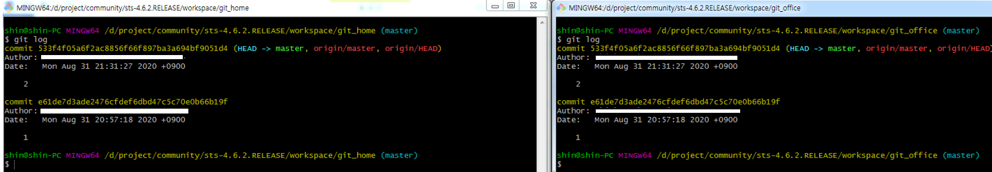 하나의 원격저장소에서 로컬저장소 2개 작성