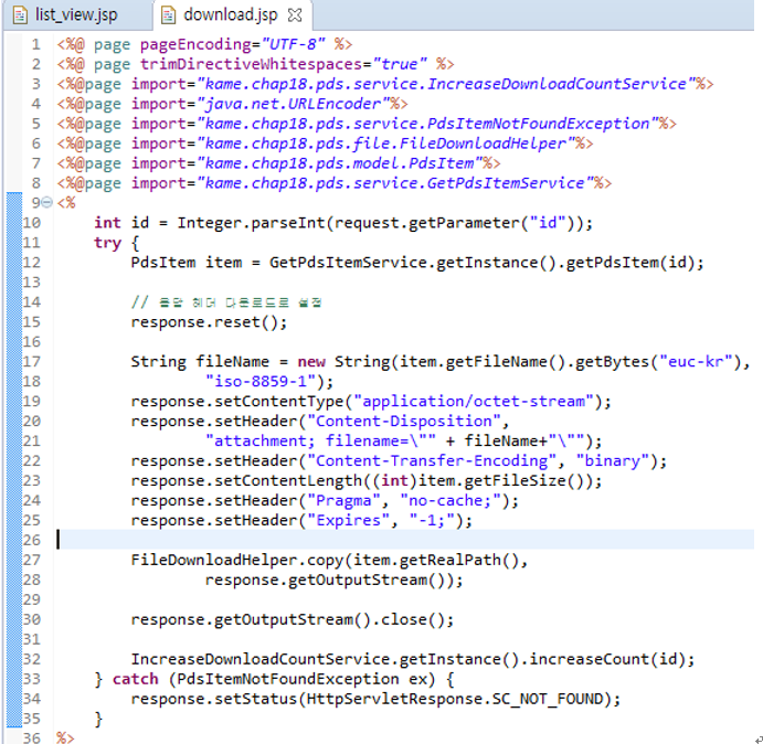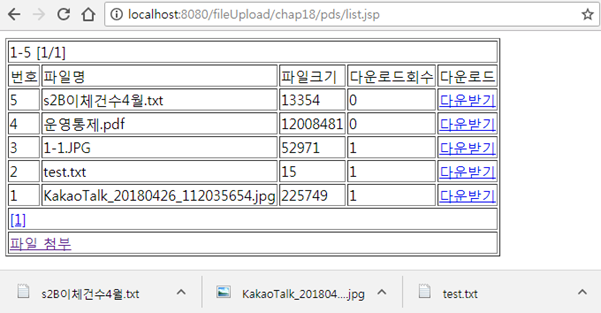 리스트 뿌려주기, 다운로드 카운트 생략 다운받기 클릭시 바로 위처럼 다운로드
