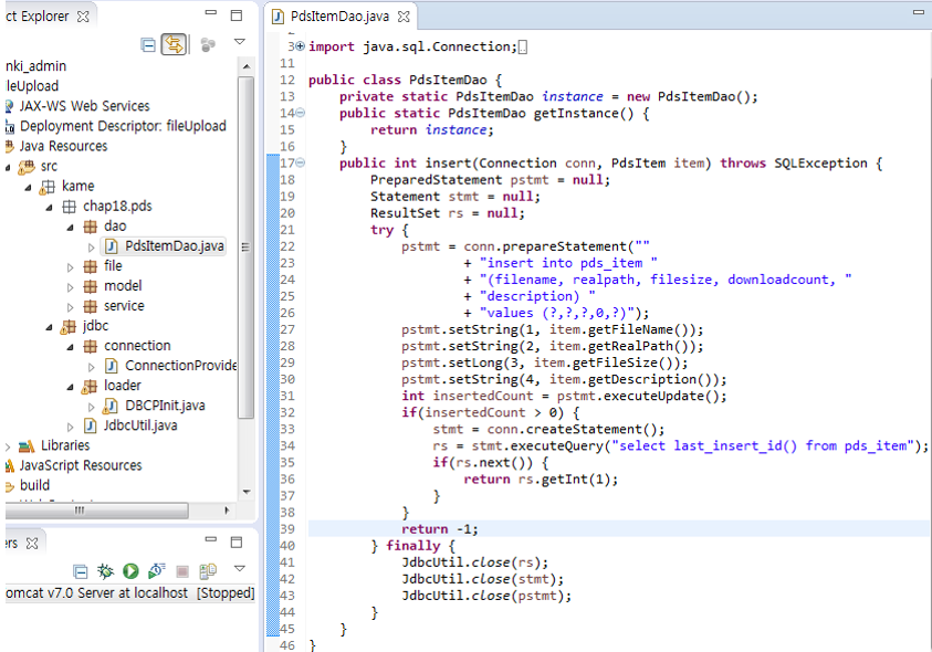 21. PdsItem 즉 VO에 파일네임,파일명 등이 세팅되어 있는 객체가옴. 이 객체를 DAO로
