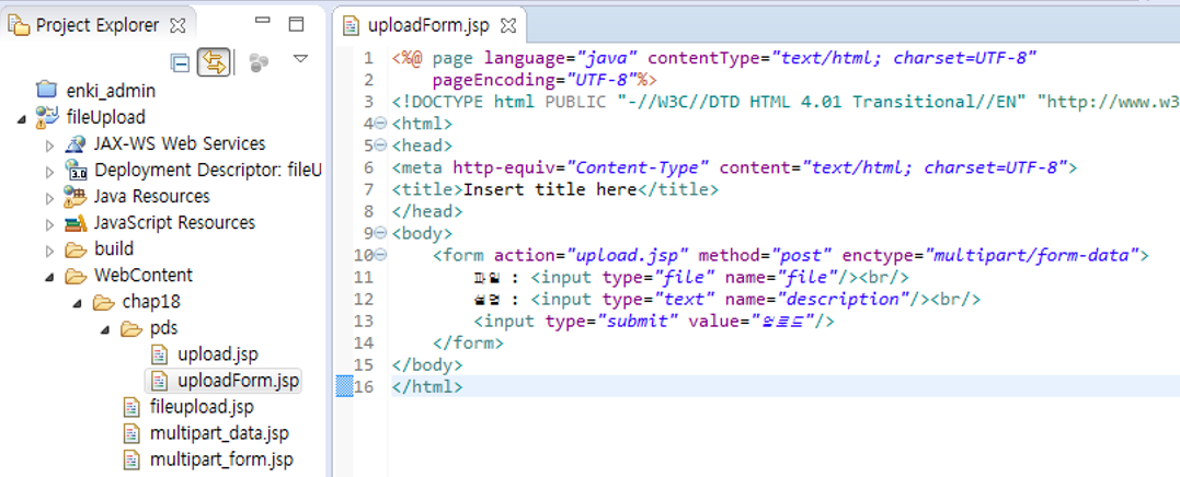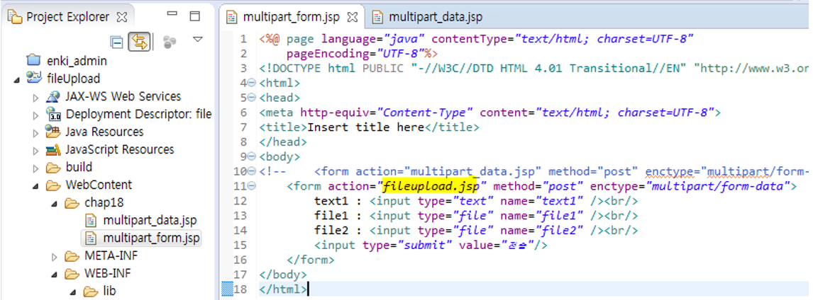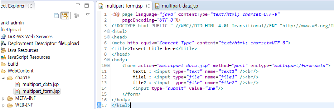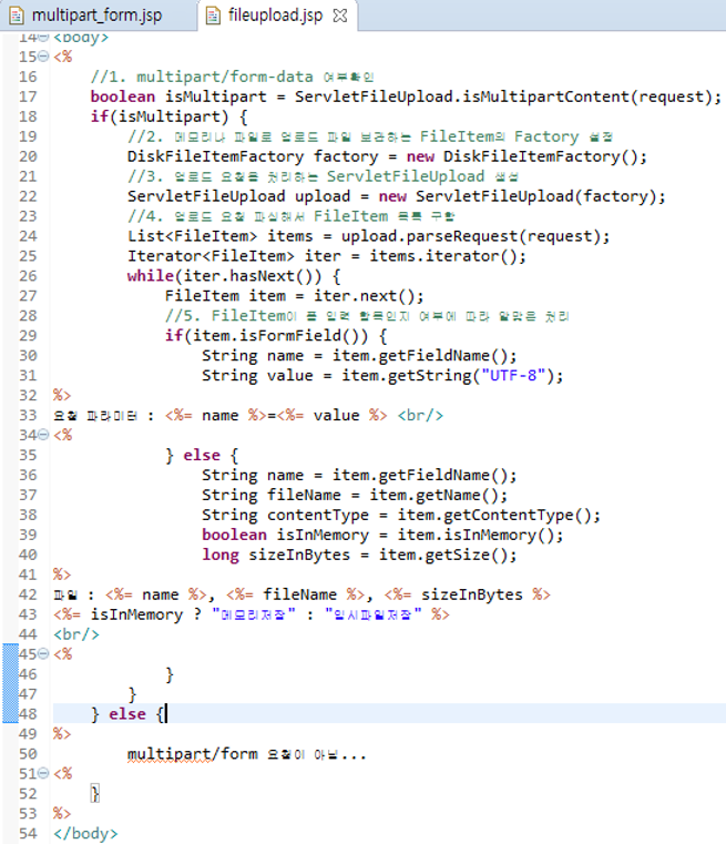 17. ServletFileUpload.isMultipartContent : FileUpload API multipart/form-data로 전송된 파라미터인지 확인