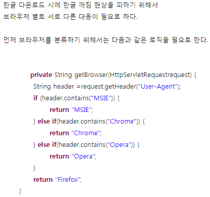 Ø 헤더는 ISO타입으로 전달해야한다. 또한 euc-kr로 인코딩된 String형을 던지는거 이기에 한글명이 안깨지는 거임. 모두 인코딩해서 던지게 되어 있으니까..