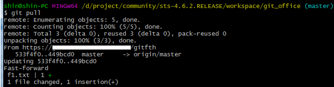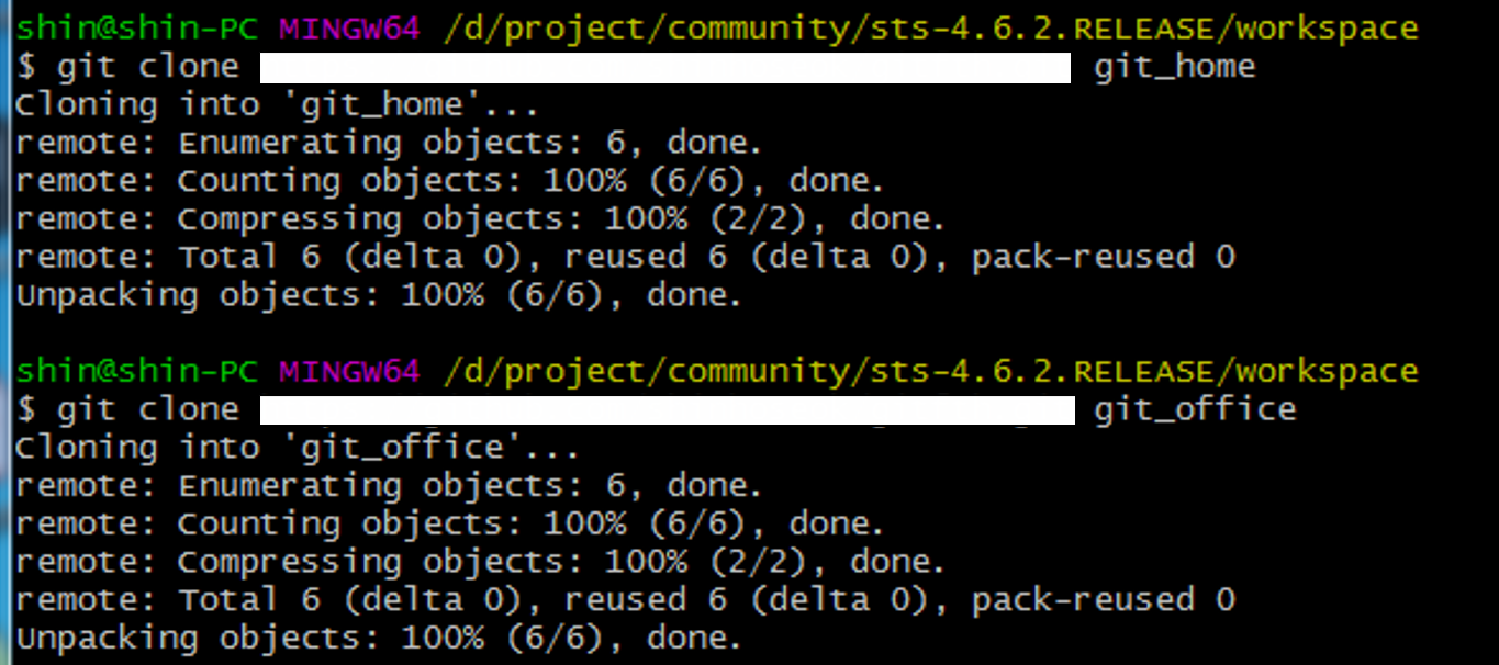 이때 아이디 패스워드를 묻지 않는 이유는 공개저장소를 쓰고 있기 때문.