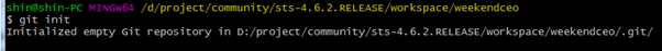 일단 Git을 먼저 설치해야한다. 설치방법은 이 글을 통해 설치하자. 설치 후 프로젝트를 가져오거나, 내가 어느정도 작성한 소스를 Github에 올리고 싶을 때 Git init 으로 프로젝트 디렉토리 명시하는 것이 첫번째.