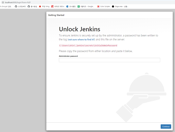 2. Administrator password를 입력(password의 위치는 빨간글씨 경로)하고 continue