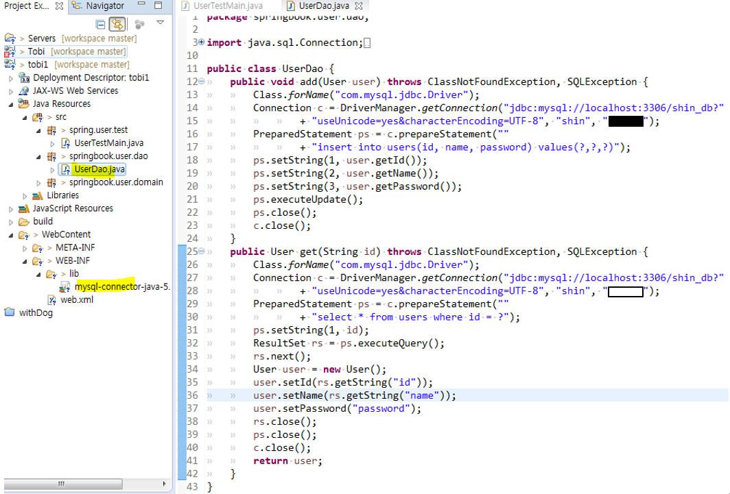UserDao를 위와같이 독립적인 메서드를 만들어주면 메서드 하나만 수정하면됨
