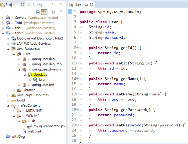 3. Property : id, name, password(자바빈의 속성)