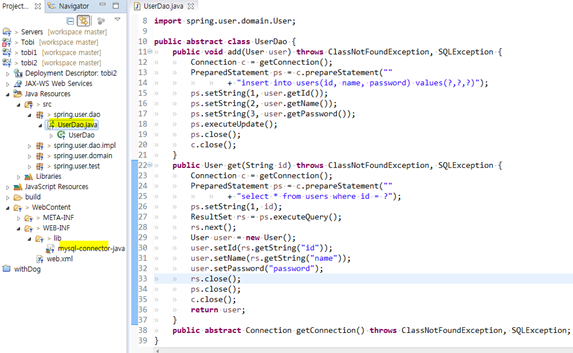 DB커넥션 관심을 추상클래스의 상속을 통해 서브클래스를 분리해버리는 것이다.
