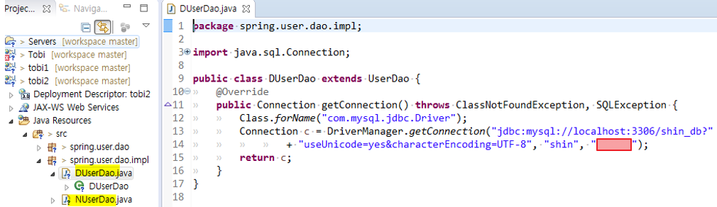 고객의 DB패스워드가 변경되었다고 해보자. UserDao의 바이너리를 판매한 상태이다. Dao 소스코드를 전달하여 줄 것인가?? 수정해서 쓰라고?? 비싼건데???