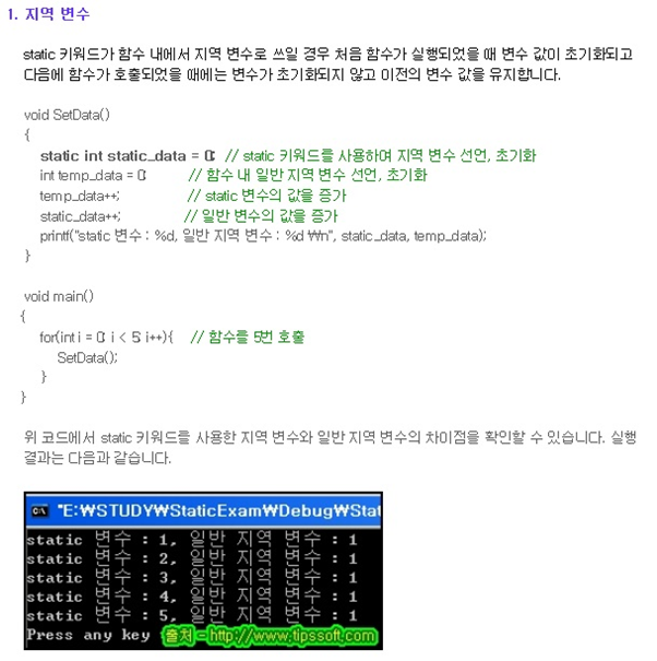 둘째로, static을 쓴 변수는 값을 공유하므로 연속적으로 그 값의 흐름을 이어갈수 있다는 것이다.