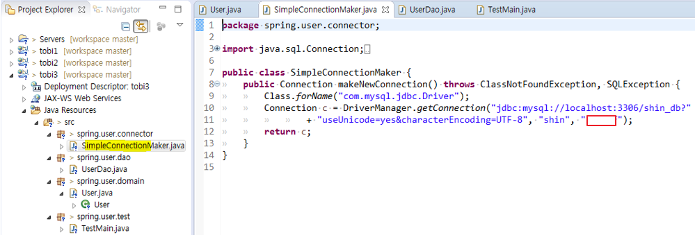 12. 여기서 다시 원점 new SimpleConnectionMaker를 통해 특정 클래스에 종속됨