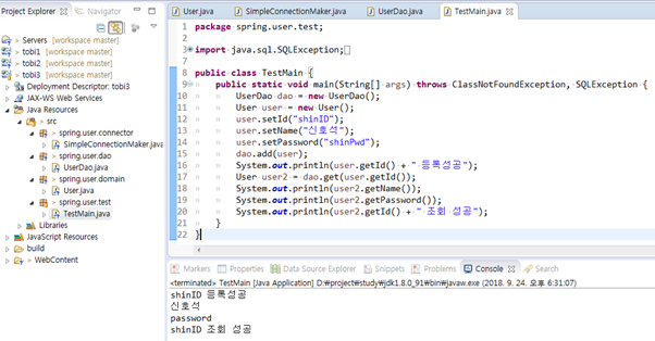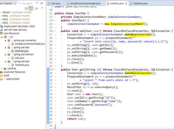 12. 여기서 다시 원점 new SimpleConnectionMaker를 통해 특정 클래스에 종속됨