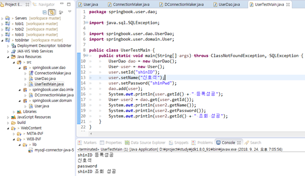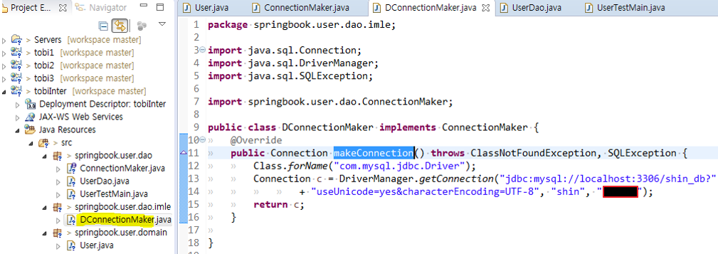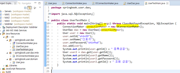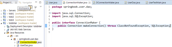 이렇게 인터페이스를 도입하고 클라이언트의 도움을 받으면 UserDao 코드는 아무런 영향을 받지 않는다.(유연하다)(다양한 회사의 커넥션 객체를 받을 수 있다. 다형성)