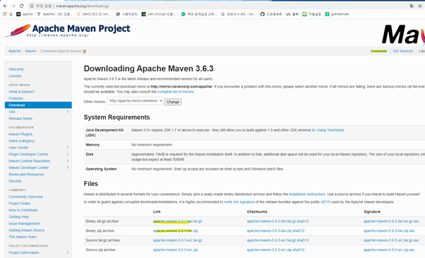 바이너리로 다운 받아야하고 맥은 tar 윈도우는 zip으로 다운