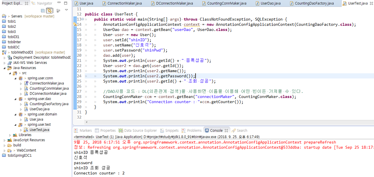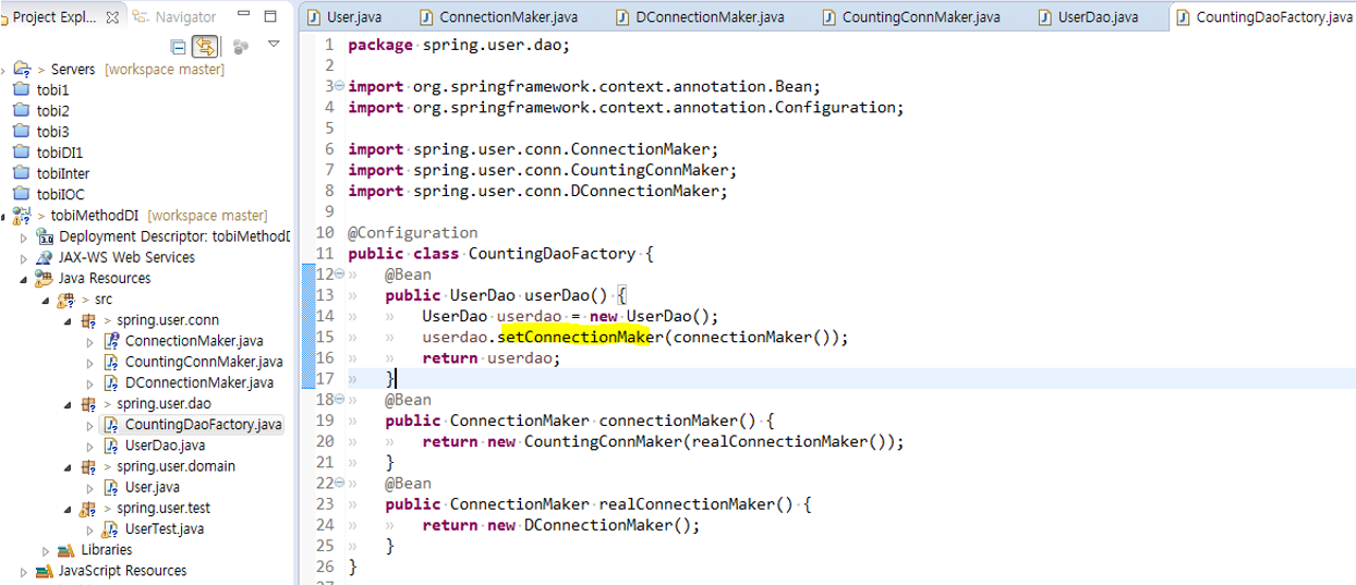 생성자가 아닌 수정자 메소드 DI를 통해 커넥션 객체를 주입하는 방식