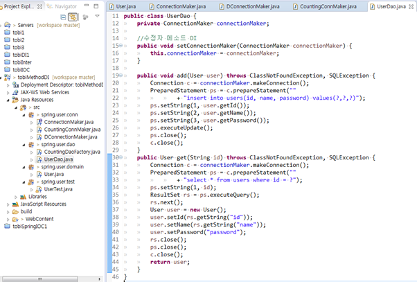 생성자가 아닌 수정자 메소드 DI를 통해 커넥션 객체를 주입하는 방식