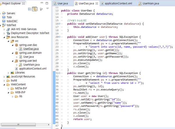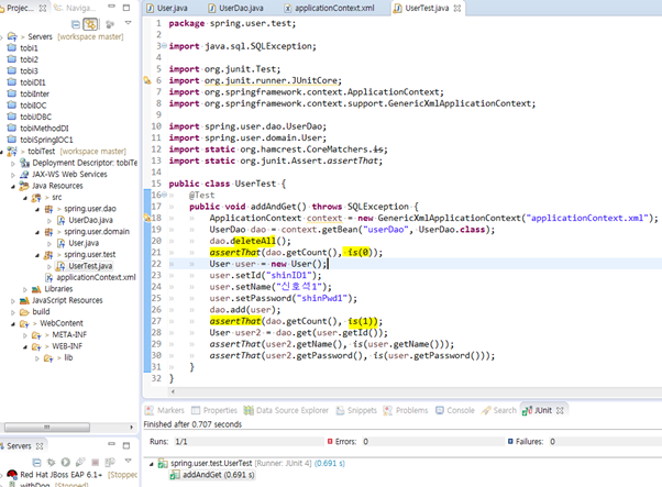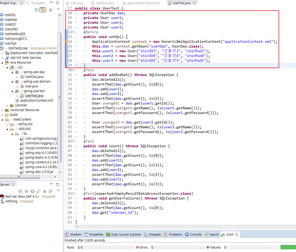 * 픽스처(fixture) : 테스트를 수행하는데 있어 필요한 정보나 오브젝트(dao, User)