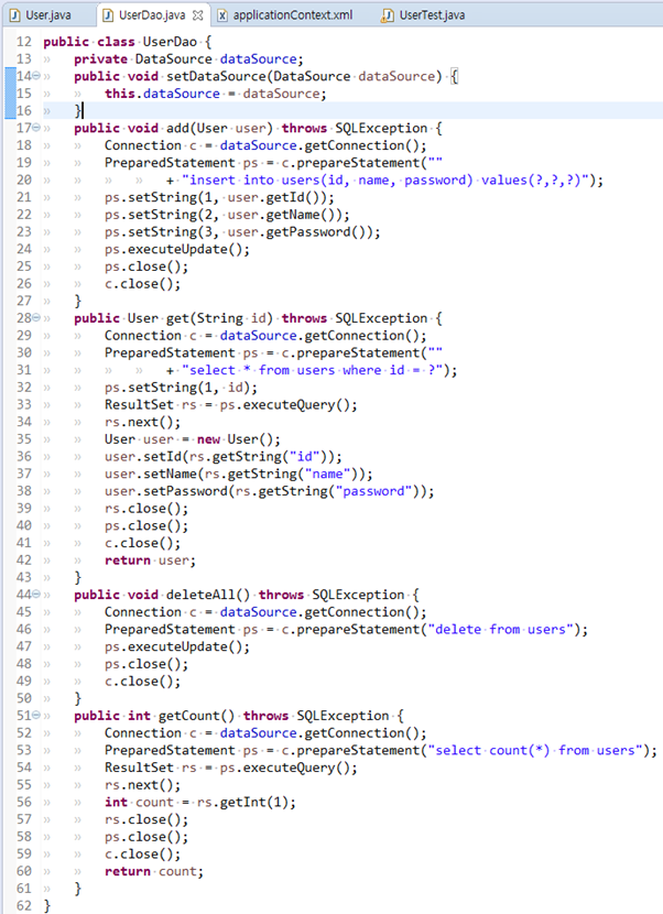 * 테스트를 마치는 마지막 부분에 deleteAll을 해줘도 되지만, 다른 테스트에서 USER 테이블에 데이터를 넣었다면 테스트가 실패 할 수 도 있으므로 테스트하기 전에 deleteAll 처리를 해주는 것이 낫다.