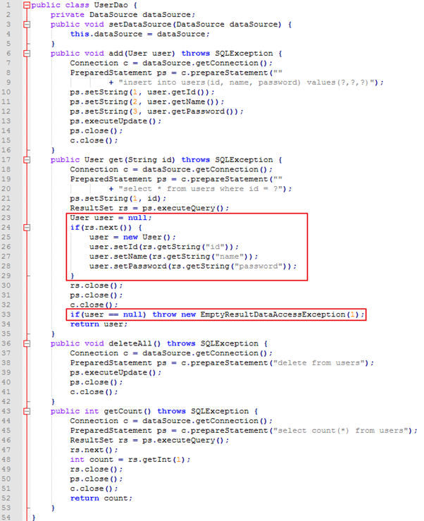 22. Before : 여태 중복되었던 dao를 가져오는 부분을 메소드 추출법으로 빼도 되지만 Junit 프레임웍에서 지원해주는 것을 사용.