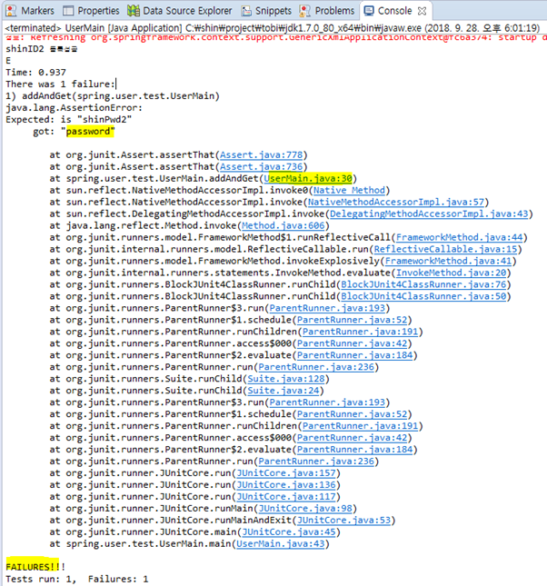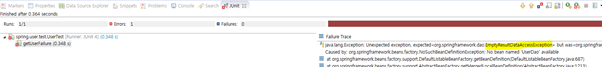 console에는 별다른 에러가 없지만 Junit에서는 해당 익셉션이 나오는걸 확인할 수 있다. |
