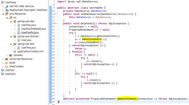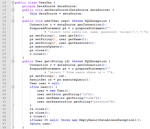 위 DAO에는 예외처리가 안되어있다 매우 심각한 문제임.