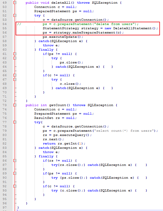 컨텍스트(deleteAll)는 그대로 유지되면서 전략만 바꿔쓸 수 있다 > OCP > 개방패쇄원칙