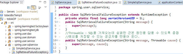 생각없이 DAO에서 던져진 SQLException은 서비스, 컨트롤러에서도 계속 다시 던져 서버로 전달되고 말 것이다.