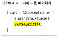 예외블랙홀 : 예외를 잡고 아무것도 안하겠다. 절대 만들어서는 안되는 코드. 예외를 무시하고 지나간다. 왜 안되는지 운영자는 찾기 힘들어 진다.